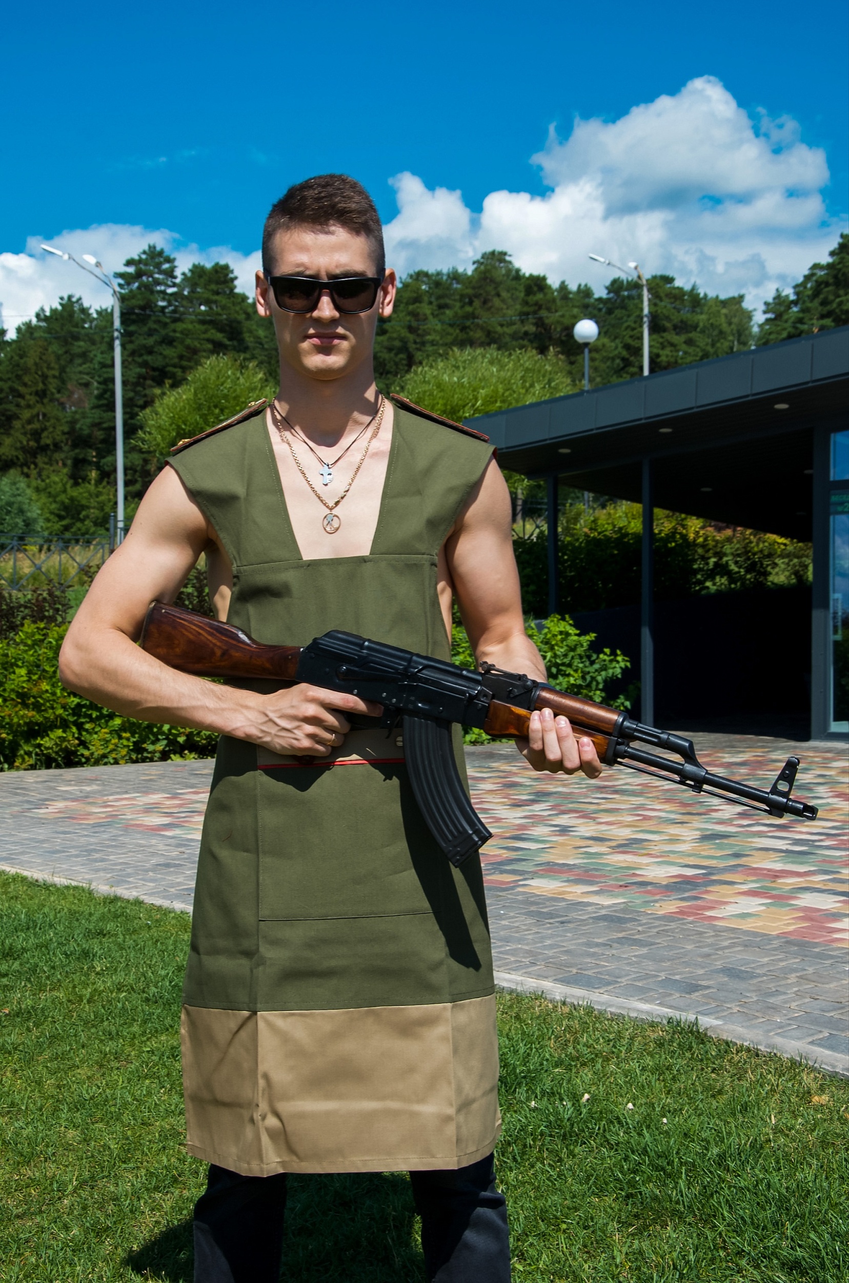 Фартук из коллекции "НА ВСЕ 100", посвещенный 100-летию гениального конструктора М.Т.Калашникова.
