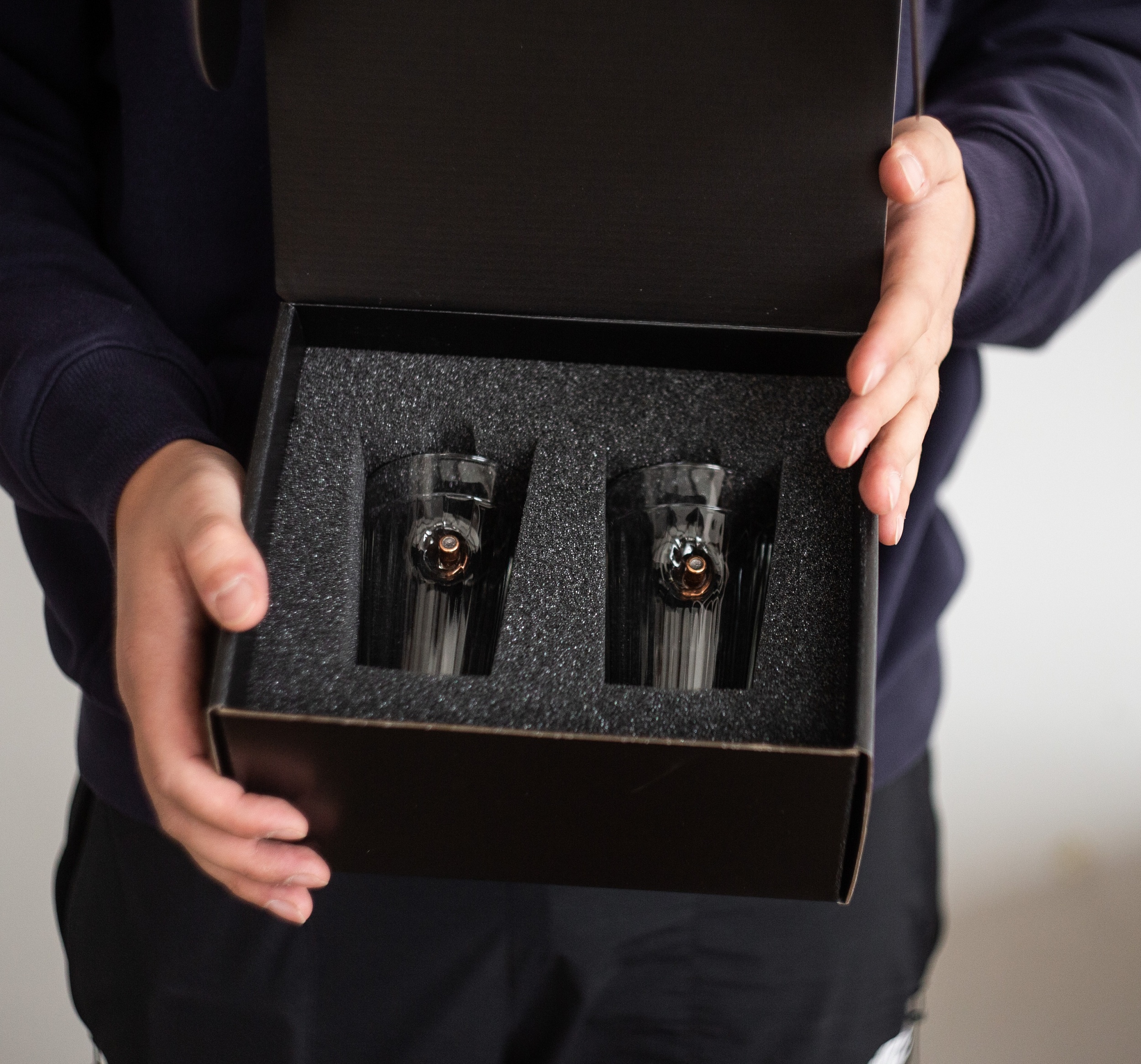 Набор стаканов "Граненый" в боксе - оригинальный сувенир из Удмуртии, который порадует любителей необычных подарков. Эти стаканы выполнены в виде граненого бокала, внутри которого находится настоящая пуля калибром 7,62 х 39 мм. Они станут отличным дополнением к коллекции или прекрасным подарком для ценителей оригинальных вещей. Красиво упакованные в бокс с логотипом Калашникова, эти стаканы будут радовать своего обладателя и вызывать восхищение у окружающих.